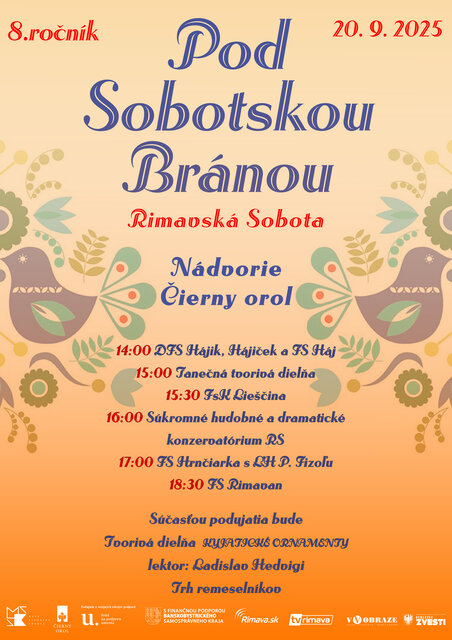 Mestské kultúrne stredisko prichádza s ďalším ročníkom jednodňového festivalu, ktorý dá priestor na prezentáciu výlučne miestnemu folklóru a prinesie radosť a potešenie všetkým priaznivcom folklóru, a ľudových tradícií. „V závere festivalu sa vždy prezentovali hosťujúce folklórne súbory z rôznych oblastí Slovenska. Tento rok sme sa však rozhodli len pre naše domáce kolektívy, nakoľko viaceré z nich oslavujú svoje okrúhle výročia.“ priblížila Regina Špitálová. V programe sa tak objaví 50. ročný FS Háj, 25. výročie si tento rok pripomína FS Hrnčiarka a najstarším jubilujúcim súborom bude 55. ročný FS Rimavan, ktorý od svojho začiatku pôsobí pri Mestskom kultúrnom stredisku v Rimavskej Sobote.
