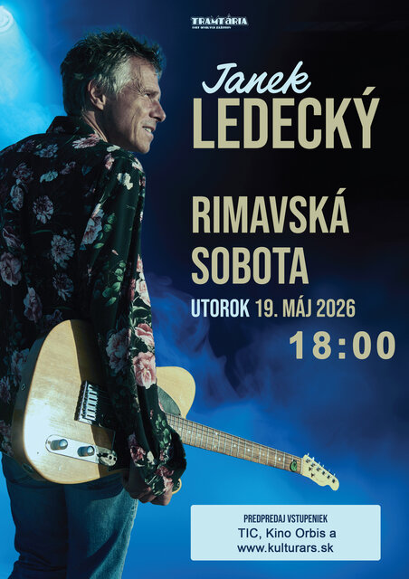 Jeho najväčšie hity ako Proklínám, Na ptáky sme krátký, Všechno bude fajn, Pěkná, pěkná, pěkná a mnoho ďalších starších aj novších pesničiek, zaznejú aj v rámci koncertu, kde ho bude doprevádzať gitarista Michal Kováčik. Príďte si vychutnať príjemný koncert skvelého českého speváka, producenta, skladateľa a textára, charizmatického Janka LEDECKÉHO. Vstupné: 30 € / 28€ podľa sedenia. Predaj vstupeniek v TIC, Kine Orbis a online !